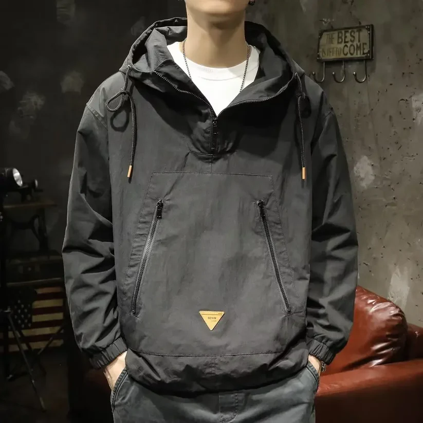 The half-zip design gives you easy ventilation, and the spacious front utility pocket adds both style and practicality. Elastic cuffs ensure a secure fit, while the hood with adjustable drawstrings offers extra protection on breezy days. Perfect for trendsetters who want comfort, color, and character in one jacket.